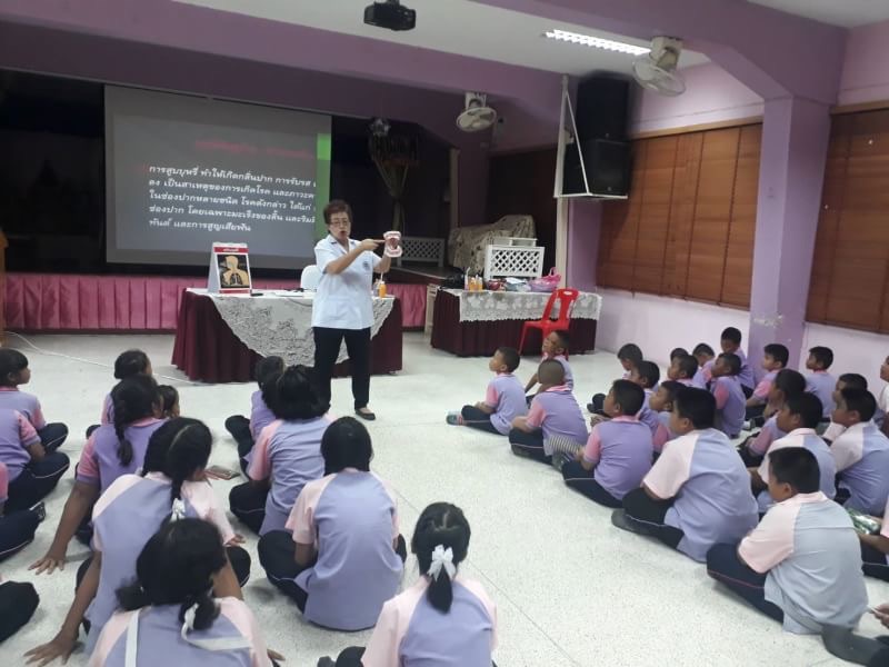 ศูนย์บริการสาธารณสุข 225 จัดกิจกรรมโนโน่เข้าโรงเรียน รูปแบบ edutainment ป้องกันนักสูบหน้าใหม่ ที่โรงเรียนวัดใหม่ช่องลม เมื่อวันที่ 10 กรกฎาคม 2562