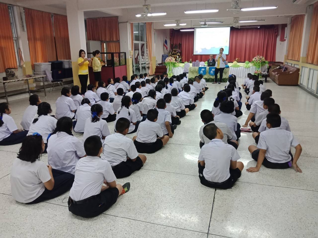ศูนย์บริการสาธารณสุข 243 จัดกิจกรรมโนโน่เข้าโรงเรียน รูปแบบ edutainment ป้องกันนักสูบหน้าใหม่ ที่โรงเรียนวัดแสนสุข เมื่อวันที่ 9 กรกฎาคม 2562