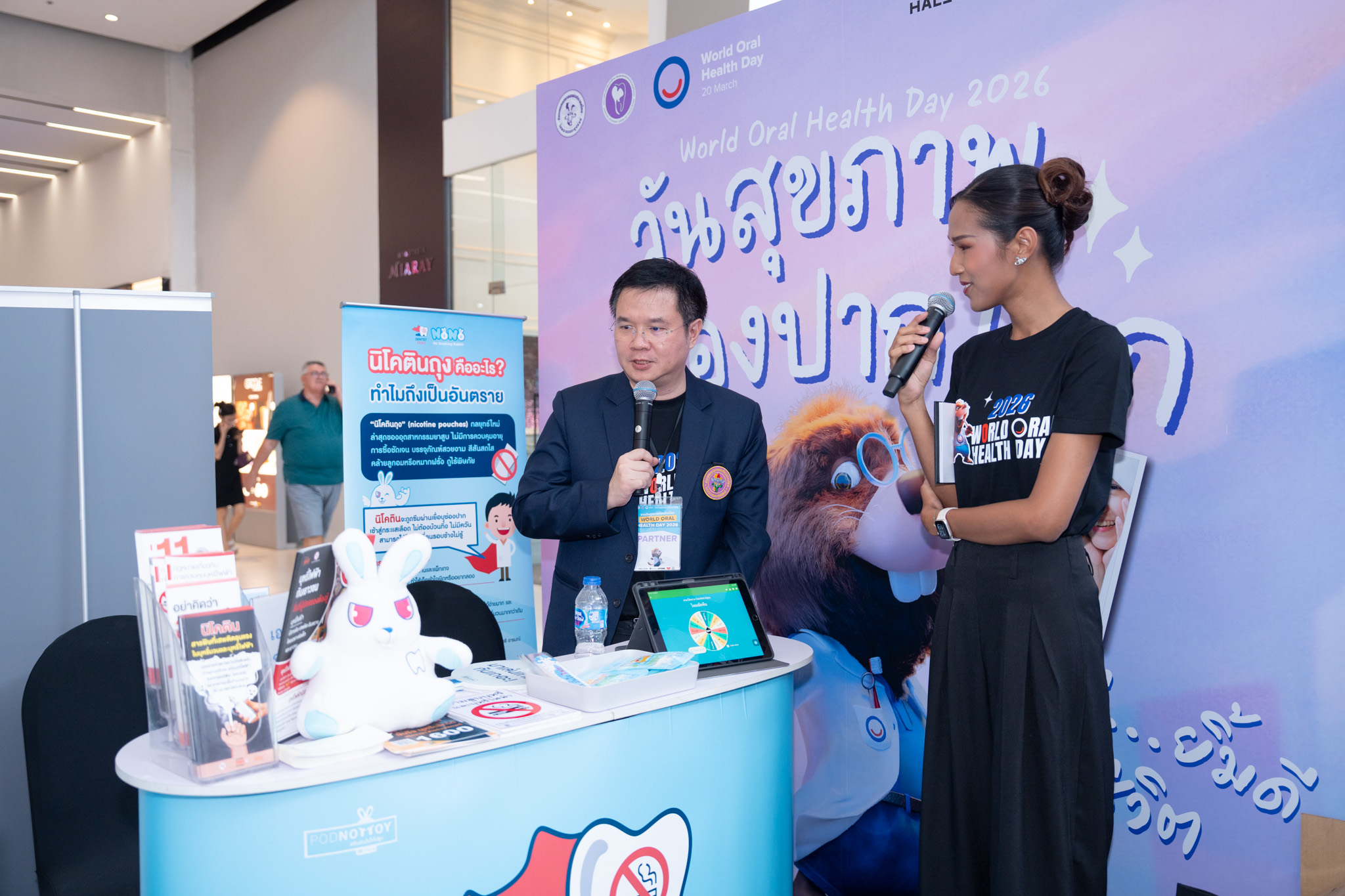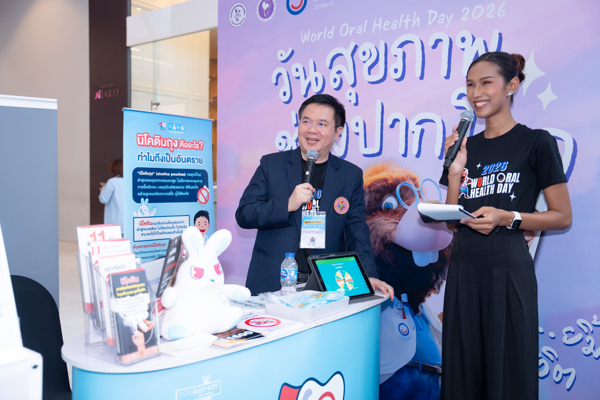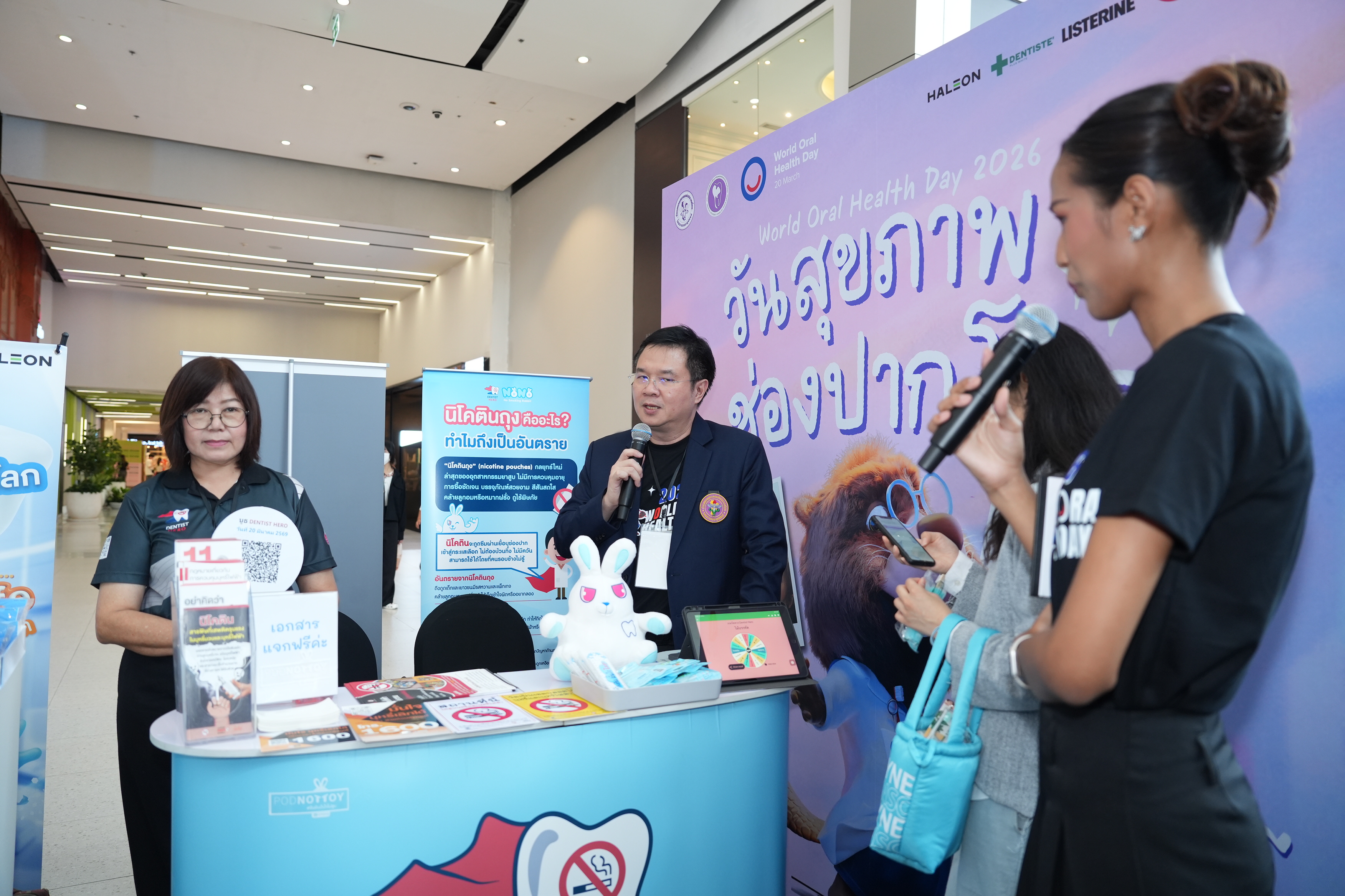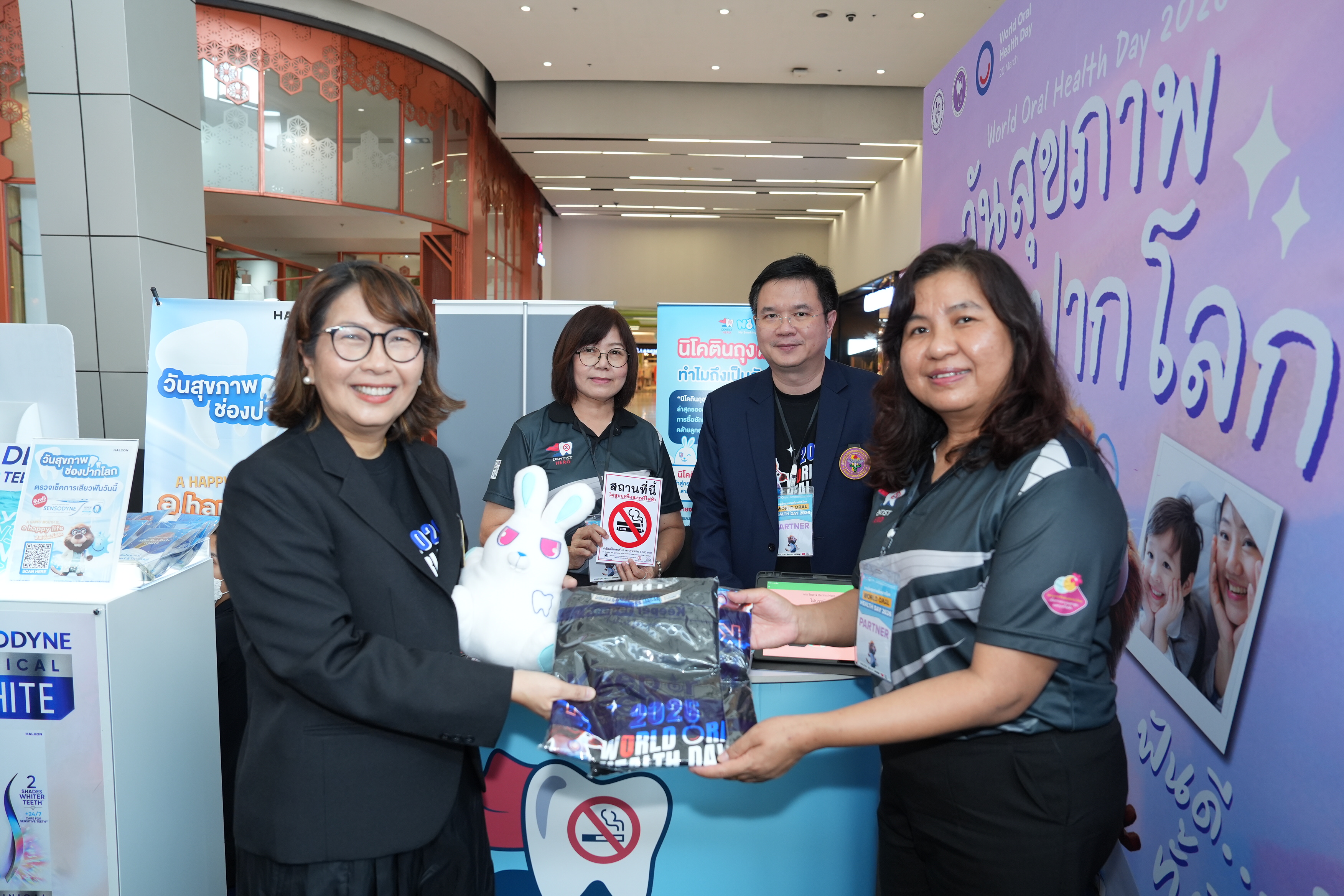 เมื่อวันที่ 20 มี.ค. 69 Dentist Hero และโครงการทันตบุคลากรไทยเพื่อการควบคุมยาสูบและบุหรี่ไฟฟ้า ร่วมจัดบูธกิจกรรมในงานวันสุขภาพช่องปากโลก (World Oral Health Day) 2026 จัดโดย ทันตแพทยสมาคมแห่งประเทศไทย ในพระบรมราชูปถัมภ์ ร่วมกับ สมาพันธ์นิสิตนักศึกษาทันตแพทย์แห่งประเทศไทย (สนทท.) และภาคีเครือข่ายด้านทันตสุขภาพ โดยมี ผศ.ดร.ทันตแพทย์สุธี สุขสุเดช ประธานคณะทำงานแผนงานย่อย ชุดที่ 3 พัฒนาเครือข่ายทันตแพทย์ภาคเอกชนในการควบคุมยาสูบ ร่วมให้ความรู้กับผู้ร่วมกิจกรรม ณ ลาน Eden ชั้น 3 CentralWorld